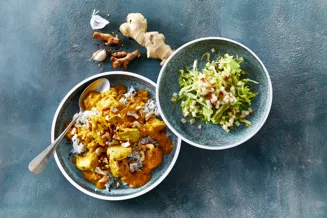 Incorporating skyr into curry dishes adds creaminess and tang. Prepare your favourite curry recipe, then stir in skyr towards the end of cooking to thicken the sauce and add a luscious texture. While our plain variant usually works best in cooking, our coconut skyr is an excellent choice for Indian and Thai dishes such as curry. It adds great flavour and texture as a replacement for coconut milk.